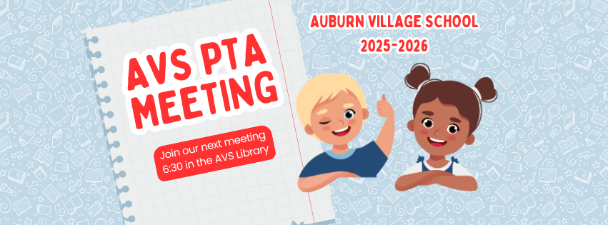 AVS PTA meetings are the 3rd Tuesday of each month (except December and June) at 6:30 in the AVS Library.